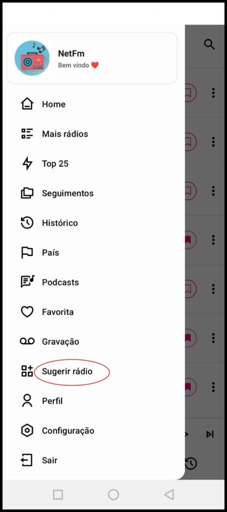 1 Menu lateral clique em – SUGERIR RÁDIO